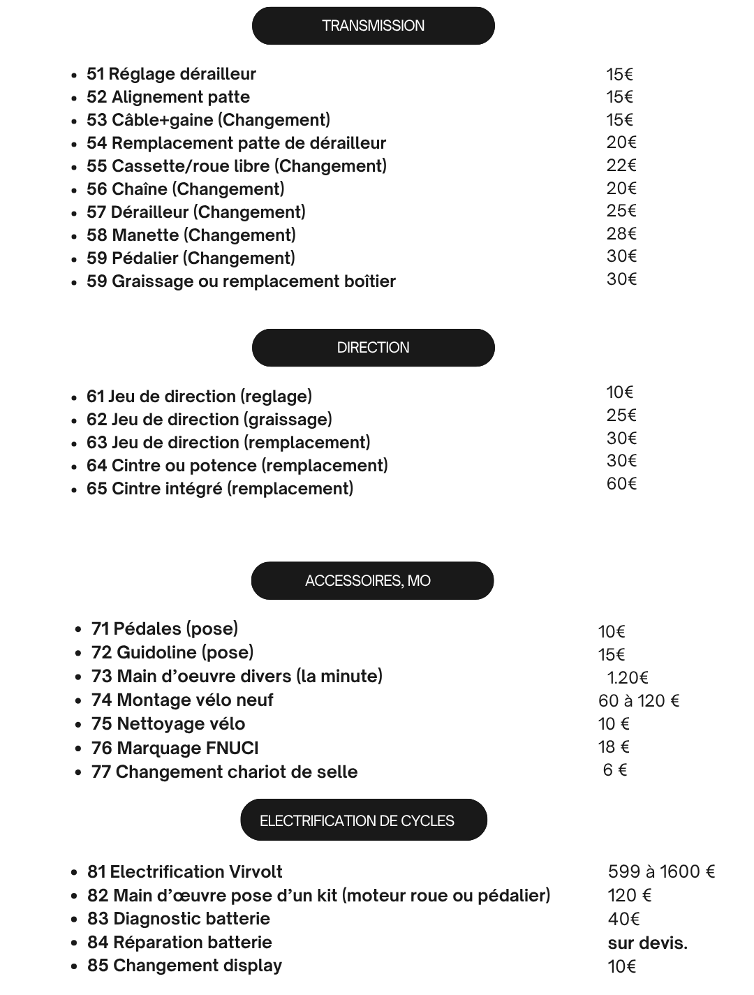 If you're looking for a qualified repair location for your trusty two-wheeled steed – electric or not – you've come to the right place. As passionate as we are meticulous, we are at your disposal to repair your bike, if possible. To do this, we first favor second-hand parts, then new ones if absolutely necessary. In our eyes, driving ecologically should not cost you a penny. This is why we are among the artisans who prioritize sustainable development. We are also happy to offer you accessories that are as practical as they are aesthetic, such as locks, baskets worthy of the name and equipment for children.